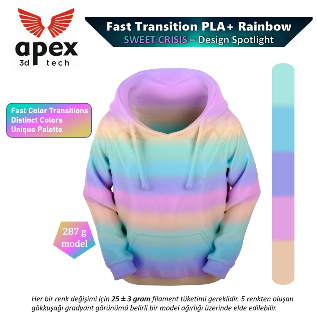 Gökkuşağı PLA+ Filament - Tatlı Krizi, 1kg, 1.75mm